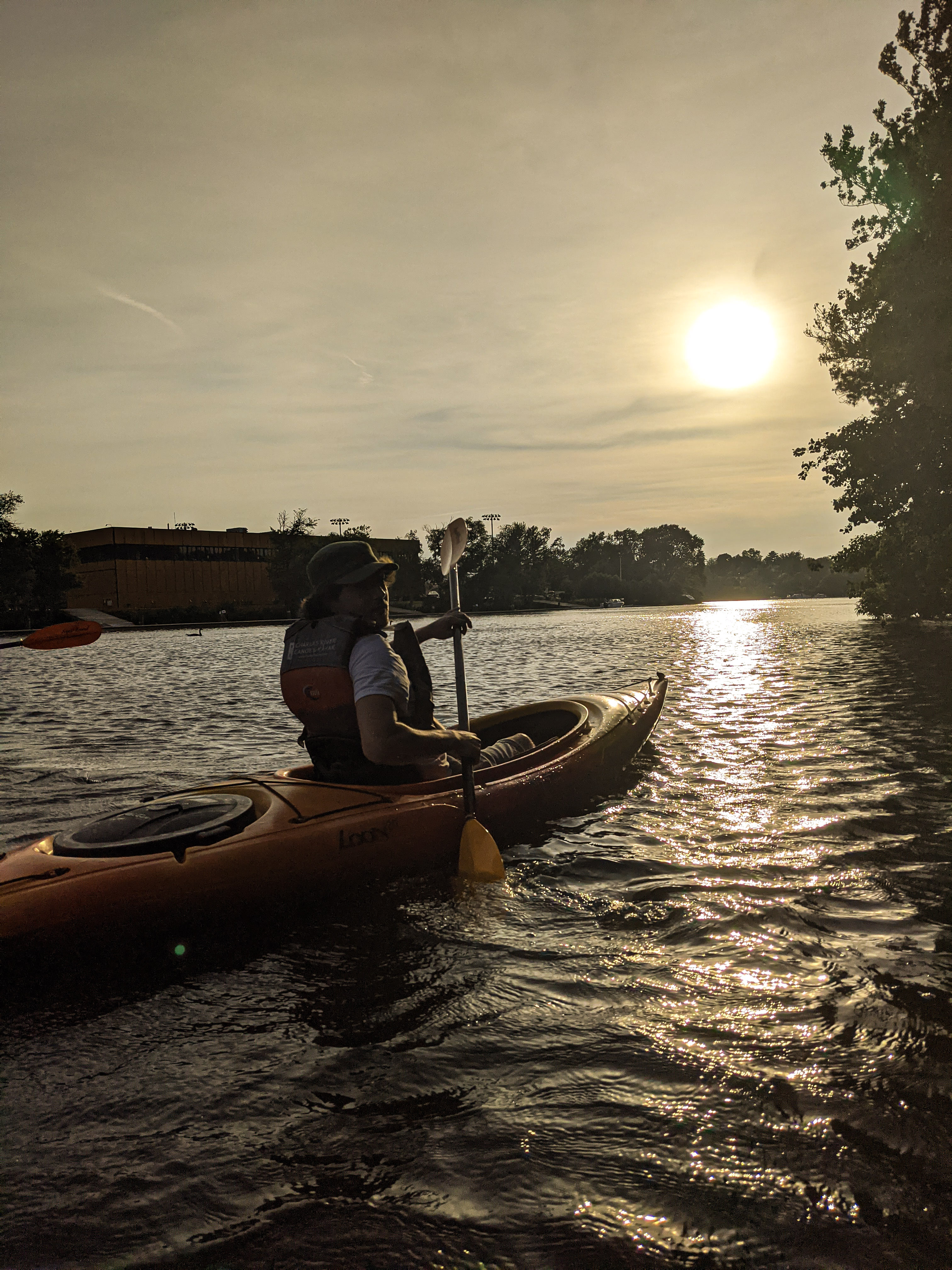 Kayaking or canoeing along the Charles River